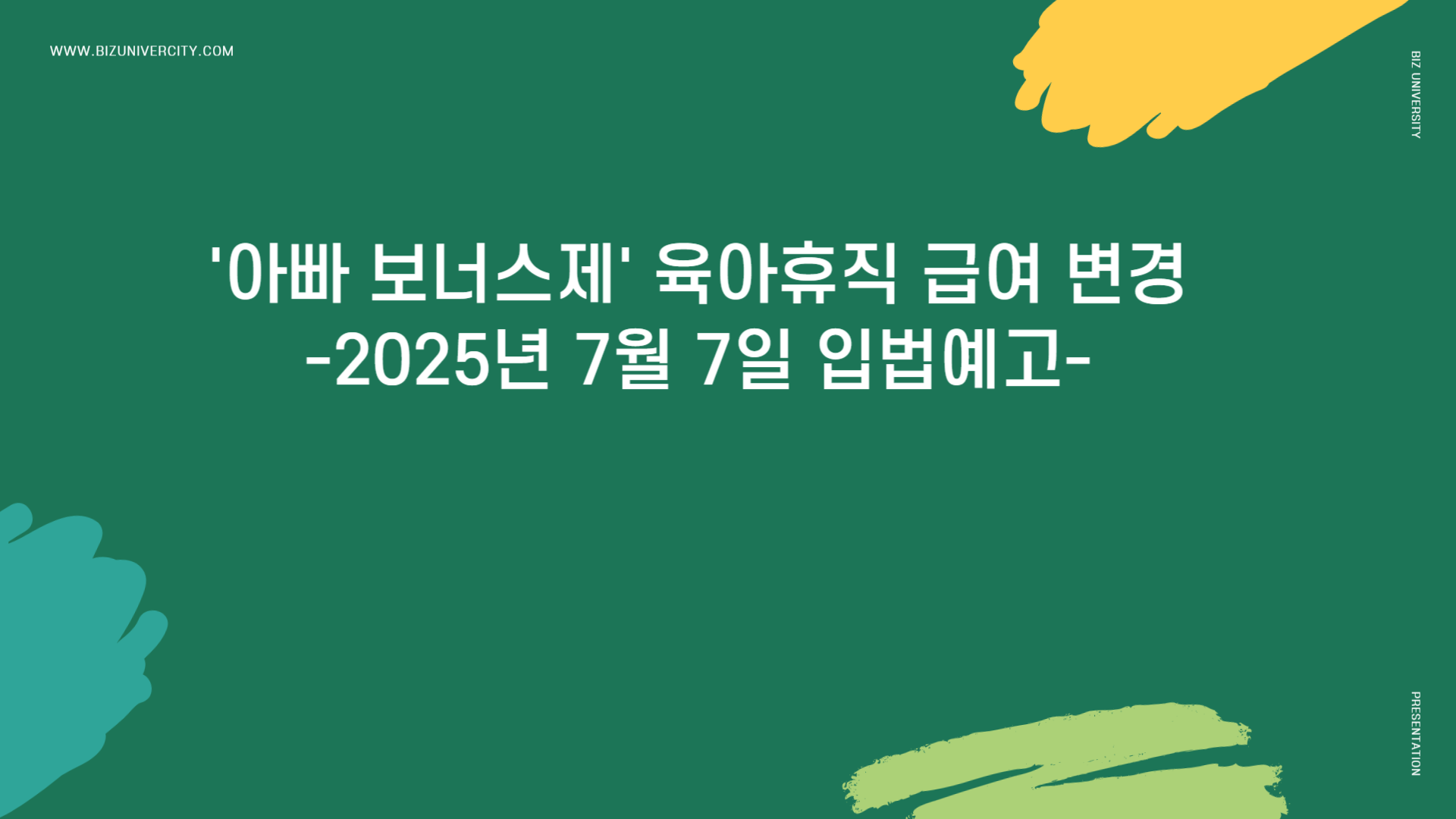 2025년 7월 7일 입법예고된 고용보험법 시행령 개정안으로 ‘아빠 보너스제’ 육아휴직 급여가 일반 육아휴직 급여 수준(4~6개월 차 월 200 만원, 7개월 차 이후 월 160 만원)으로 인상된다.