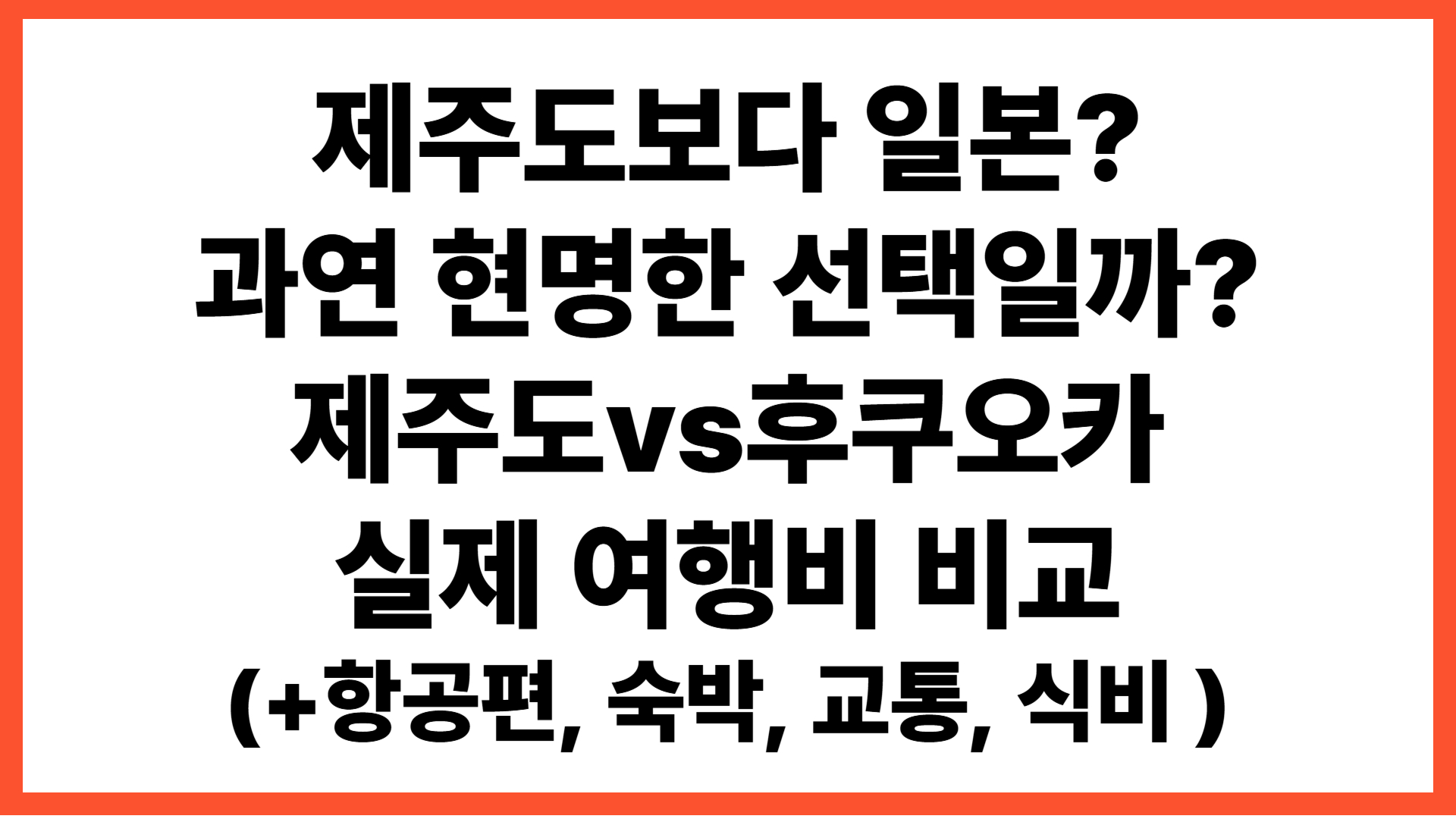 따라서 예산 절감과 자유 일정을 중시한다면 제주도가, 일본 문화·쇼핑 경험을 원한다면 후쿠오카가 적합하다. 여행 목적과 우선순위를 고려해 합리적인 선택을 하자.