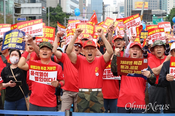 정원철 해병대예비역연대 회장은 국회 본청 앞에서 “채 상병 사건 진상규명의 걸림돌이 제거됐다”며 “책임자들이 명확히 처벌될 때까지 지켜보겠다”고 말했다. 해병대예비역연대 회원 50여 명은 붉은색 티셔츠를 입고 국회 방청석을 찾아가 경례하며 가결을 환영했다.