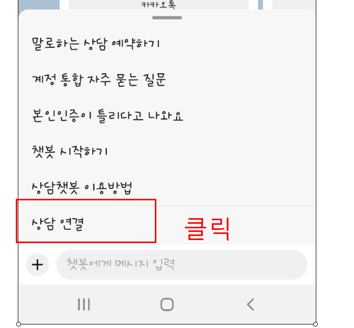 스크롤을 내려서 "카톡 챗봇상담" 을 클릭합니다.