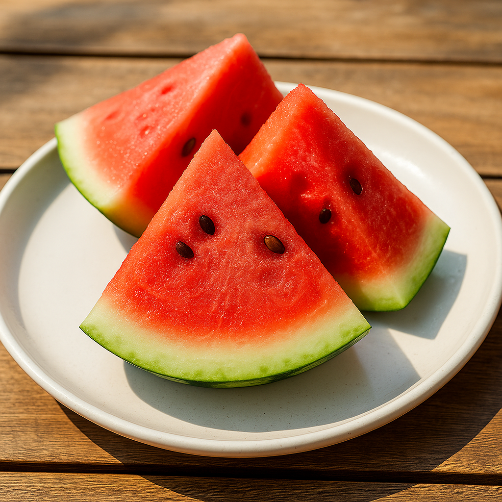 수분 함량이 90% 이상인 수박은 체온을 낮추고 갈증 해소에 탁월합니다. 리코펜·비타민 C가 풍부해 항산화 효과도 뛰어나죠.