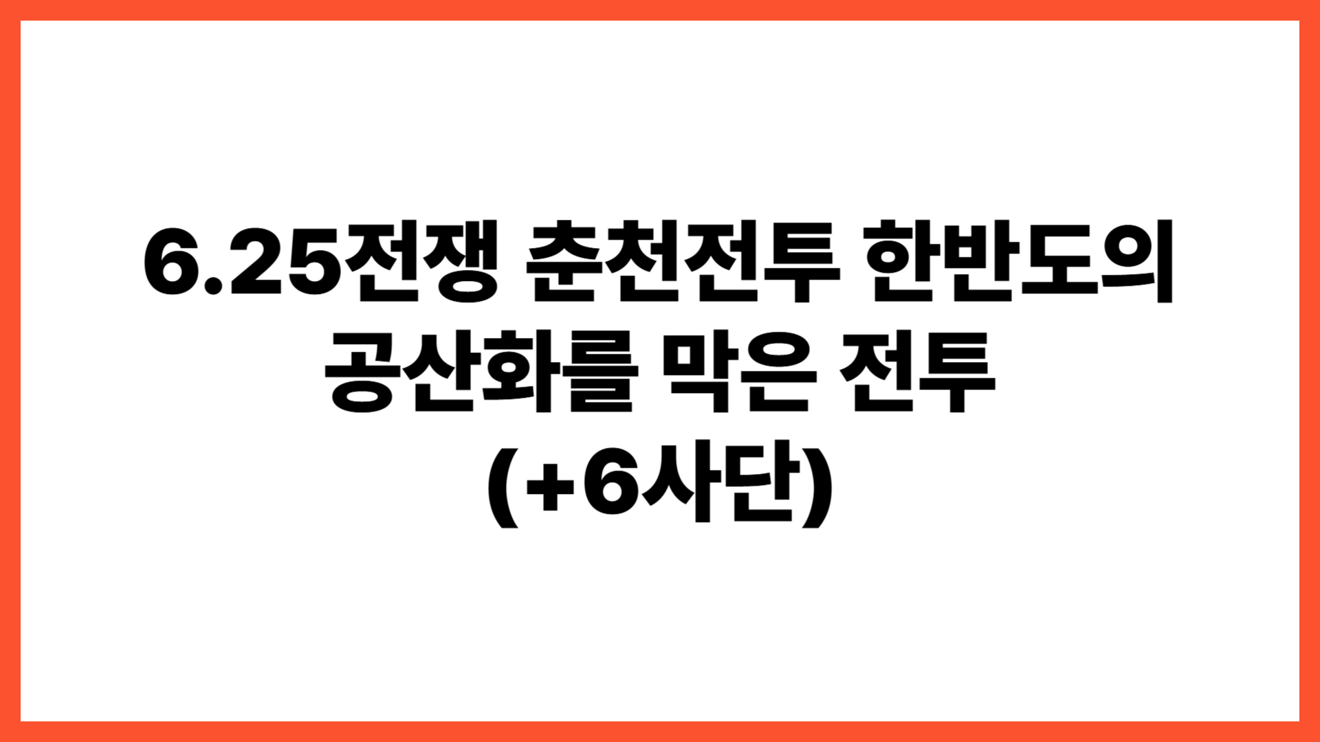 2025년 6월 25일은 6.25전쟁 75주기를 맞이하는 날입니다. 순국선열들의 피가 없었다면 오늘날의 자유민주주의 대한민국은 존재하지 않았습니다. 그 과정에서 전술적으로 잘 준비된 북한군을 맨 손으로 싸워야 하는 불굴의 의지와 투지가 있었습니다. 6보병사단은 중무장한 북한군의 전력 앞에서 그들은 물러섬 없이 싸웠고 서울에 고립된 주 병력들이 안전하게 퇴각할 시간을 벌어 북한군의 공격을 효과적으로 지연시켰고 결론적으로 낙동강 방어선을 형성하여 전투를 할 수 있는 귀중한 시간을 벌었습니다. 본문에서는 춘천전투에 대해 간략하게 알아보는 시간을 가져보겠습니다.