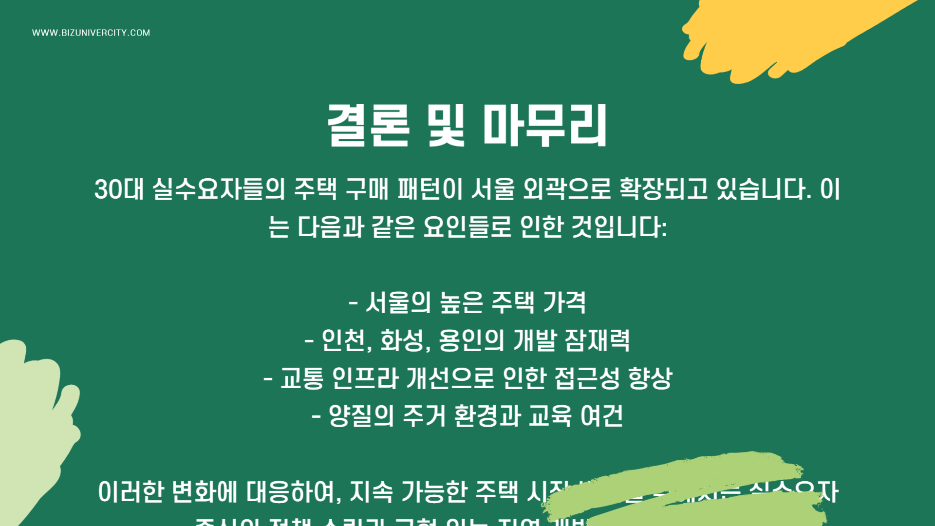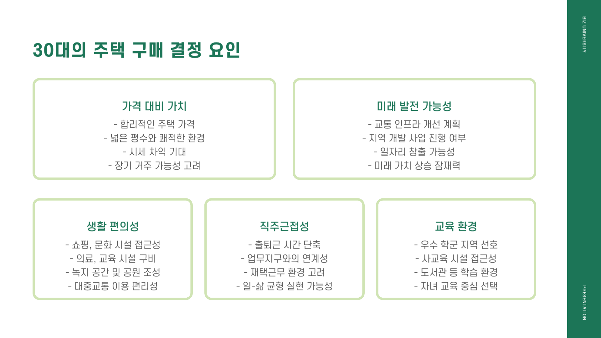 | 생활 인프라 | 학교·병원·상권은 향후 자산 가치와 직결 |