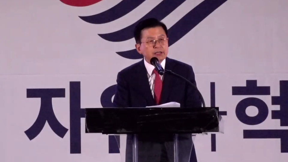 - 황 전 총리는 개회사 직후 만장일치 박수로 당대표에 추대