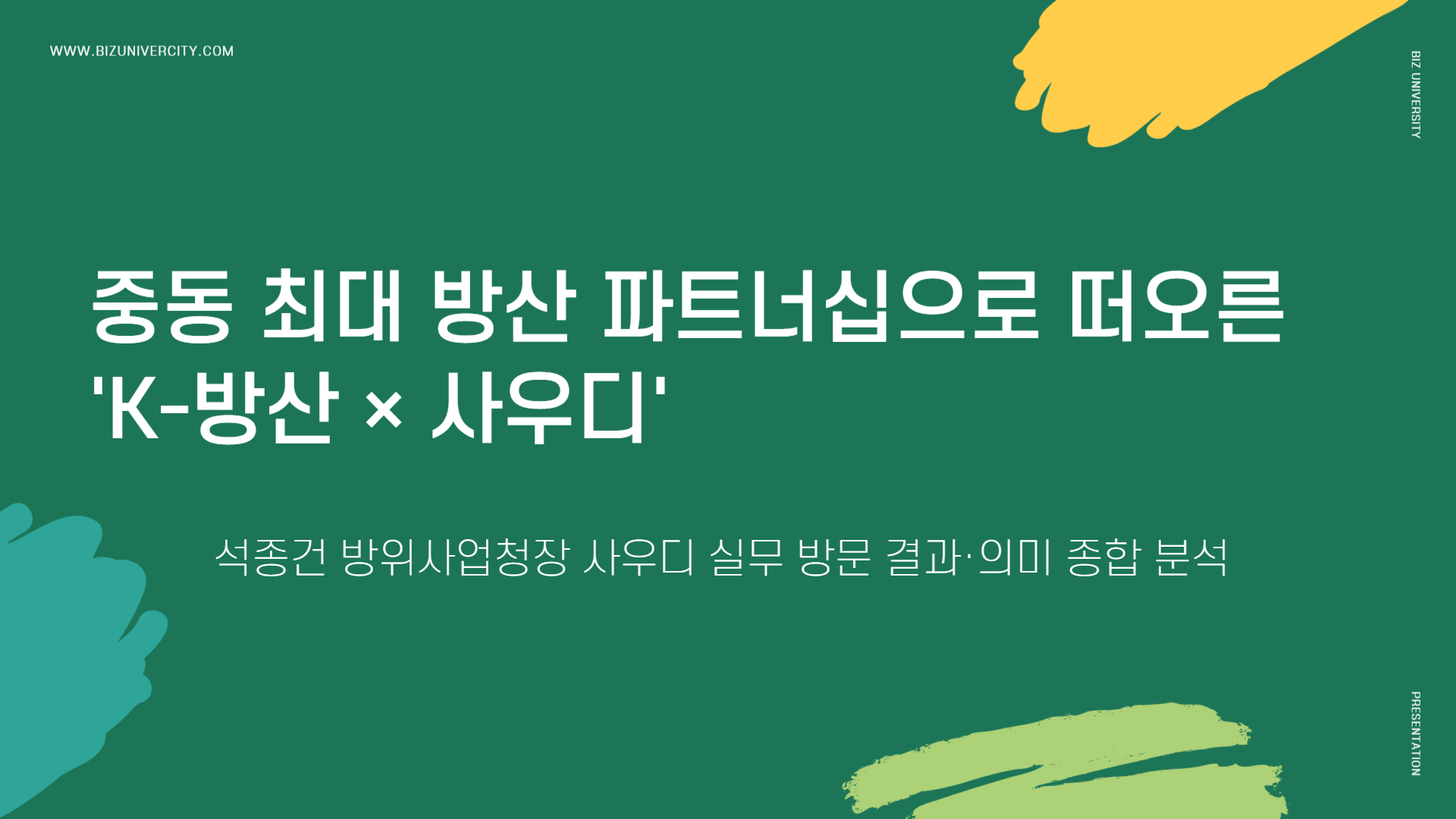 석종건 방위사업청장은 “이번 방문으로 사우디를 중동 방산협력 허브로 발돋움시키고, K-방산의 전략적 영향력을 확대할 발판을 마련했다”고 평가했습니다.