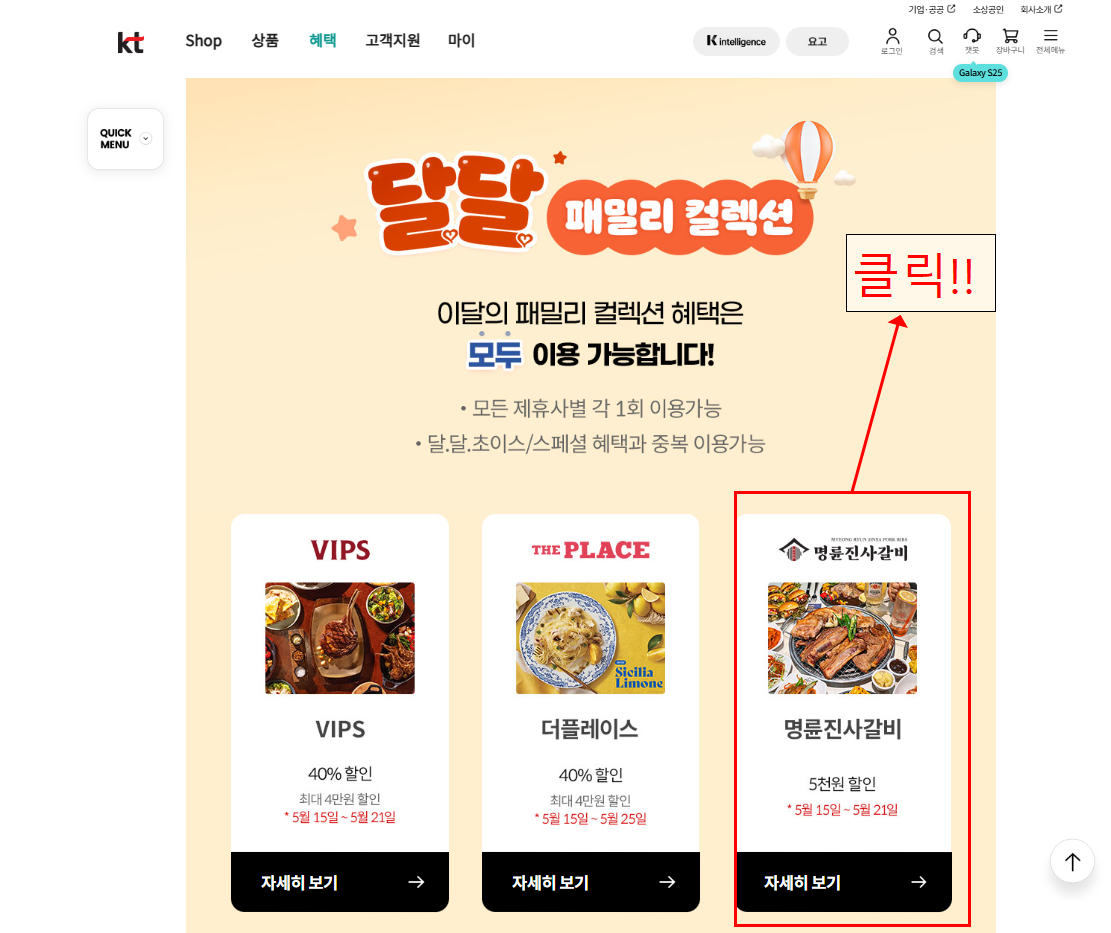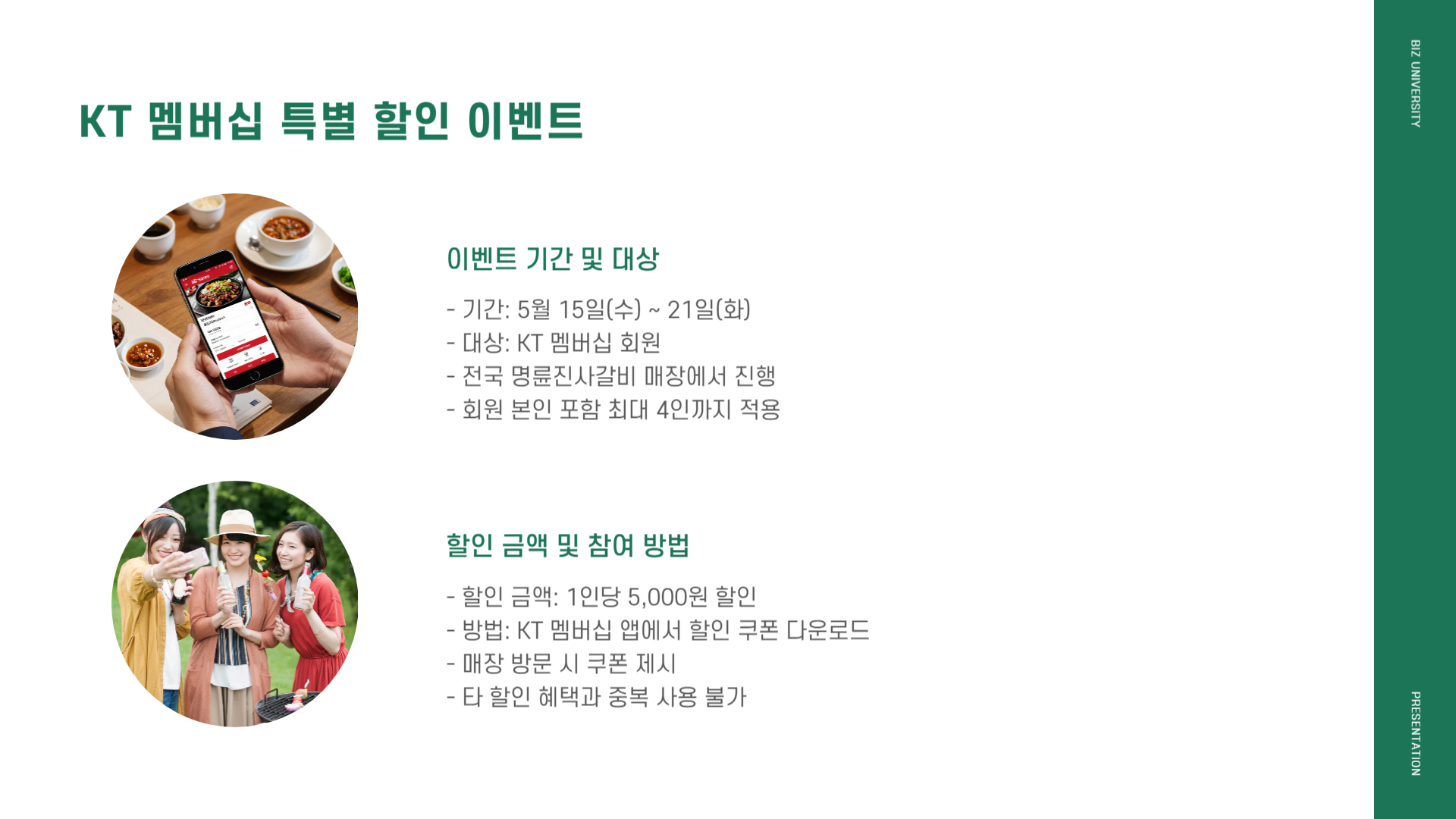 | 행사명 | KT 멤버십 ‘달달혜택’ 명륜진사갈비 5 천 원 할인 |