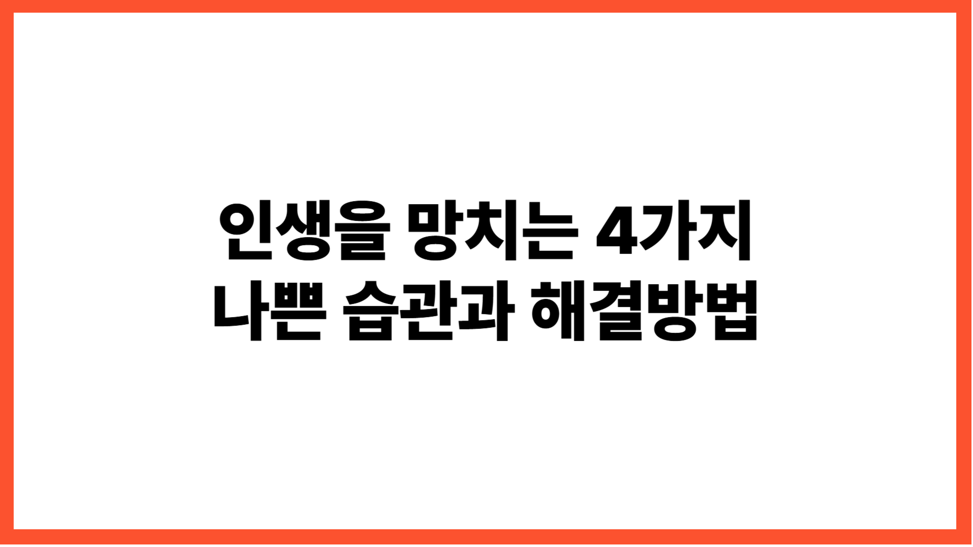 사소한 습관 하나가 하루하루를 피로하게 만들고, 결국 인생 전체를 갉아먹을 수 있습니다. 무심코 반복하는 말투나 비교하는 태도, 인정 욕구에 흔들리는 마음가짐이 내면의 평화를 깨뜨리죠. 오늘은 “인생을 망치는 4가지 습관”을 짚어보고, 스스로를 보호할 수 있는 작은 실천 방안을 함께 살펴보겠습니다.