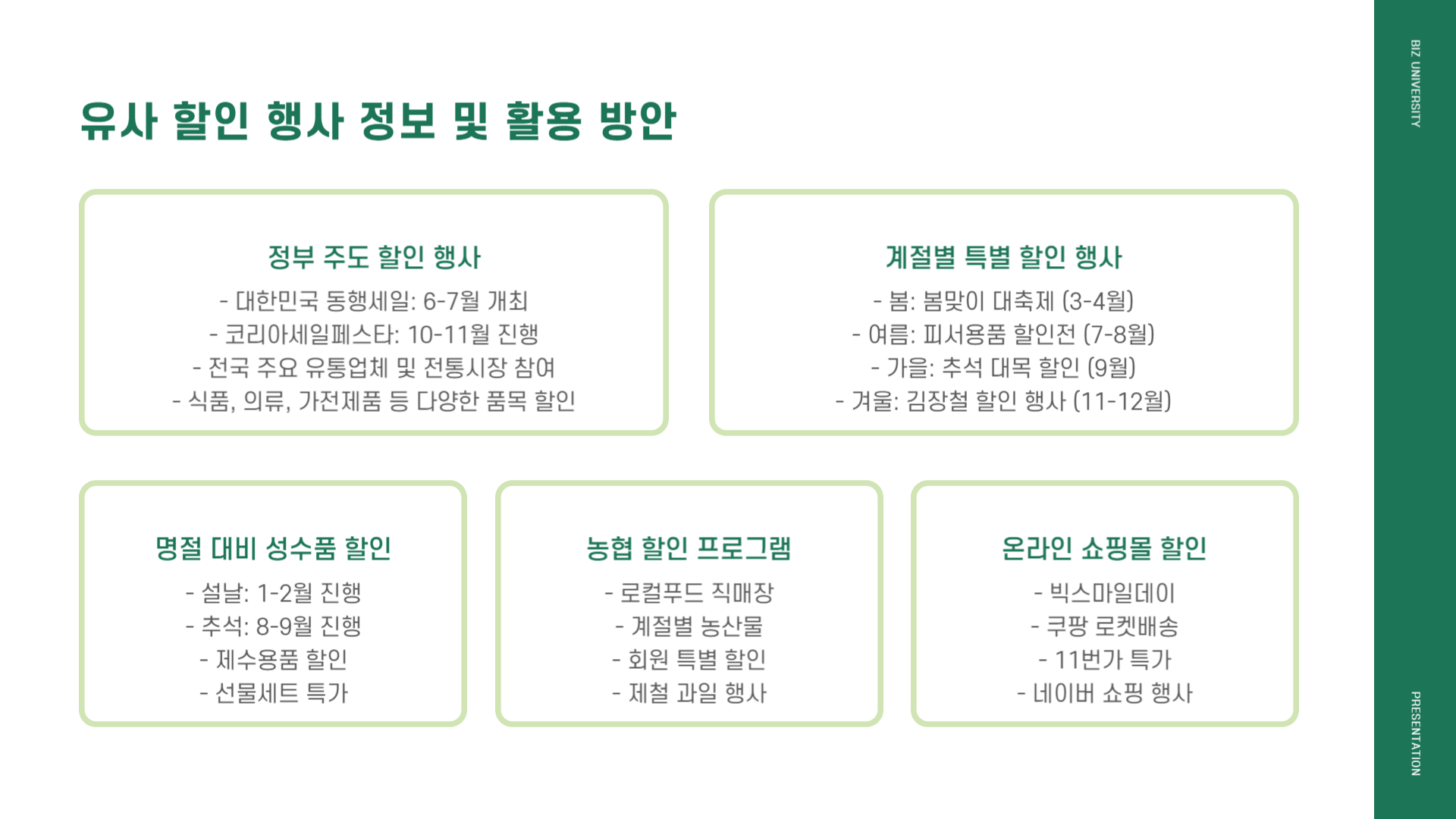 - 할인율은 동일하므로 단가가 높은 과일 선물세트·특대계란 등에 적용하면 절감 효과 극대화.