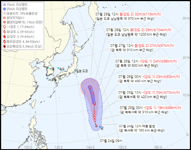 - 발생 위치: 괌 북서쪽 약 160km 부근 해상